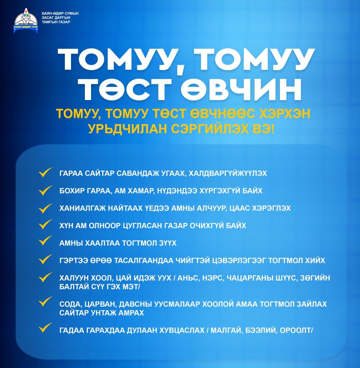ТОМУУ, ТОМУУ ТӨСТ ӨВЧНӨӨС ХЭРХЭН УРЬДЧИЛАН СЭРГИЙЛЭХ ВЭ