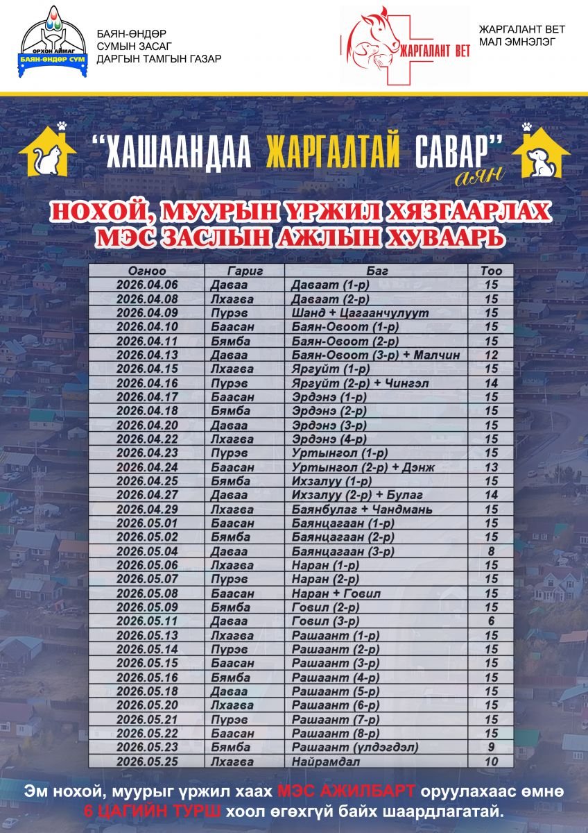 Мөн тухайн багийн иргэн тэжээвэр амьтнаа хамруулахдаа багийн Засаг даргын тодорхойлолтыг хавсарган очно.
