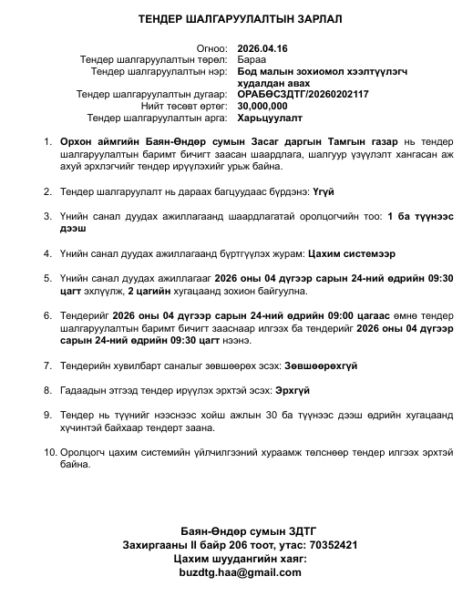 Орхон аймаг Баян-Өндөр сумын ЗДТГ