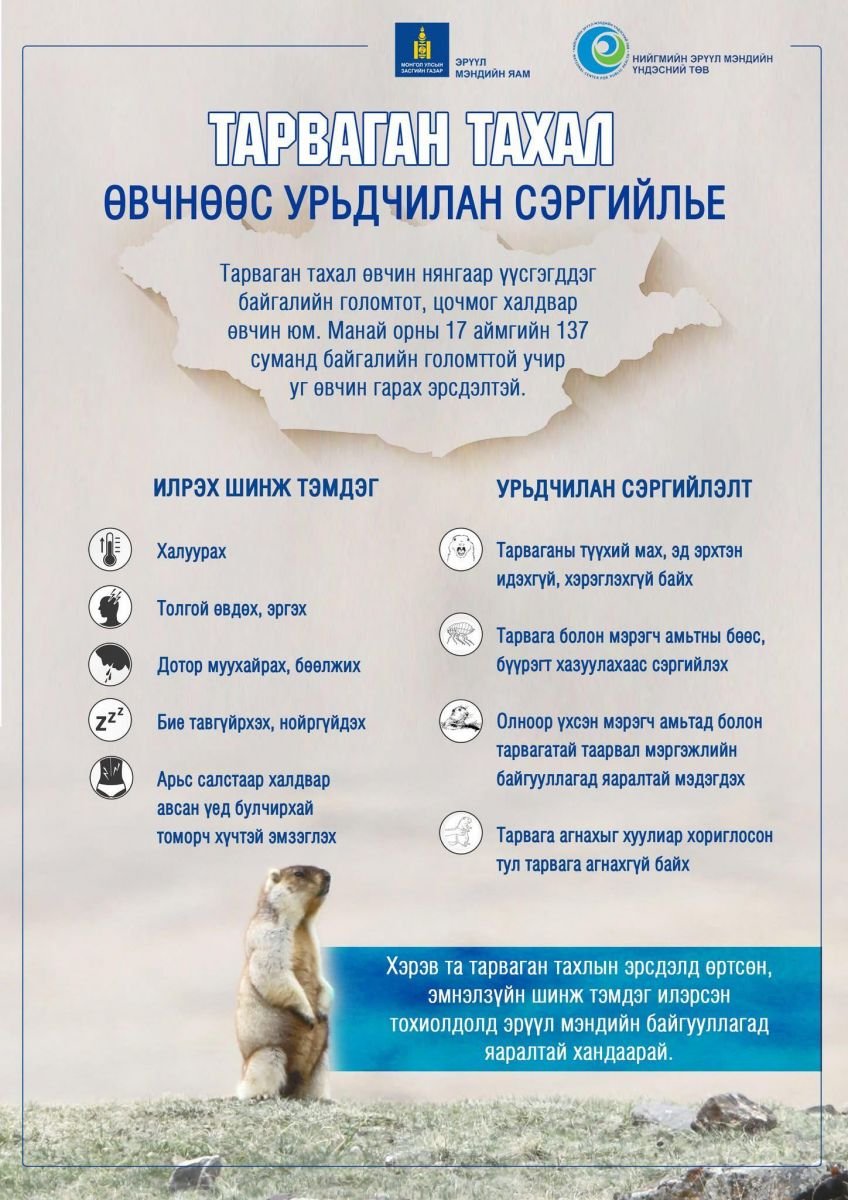 Хөвсгөл аймагт тарваган тахал илэрч хөл хорио тогтоолоо.