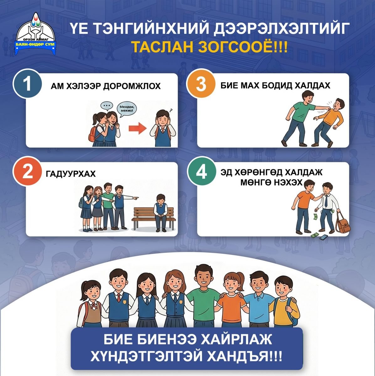 Үе тэнгийнхний ДЭЭРЭЛХЭЛТИЙГ таслан зогсооё!!!
